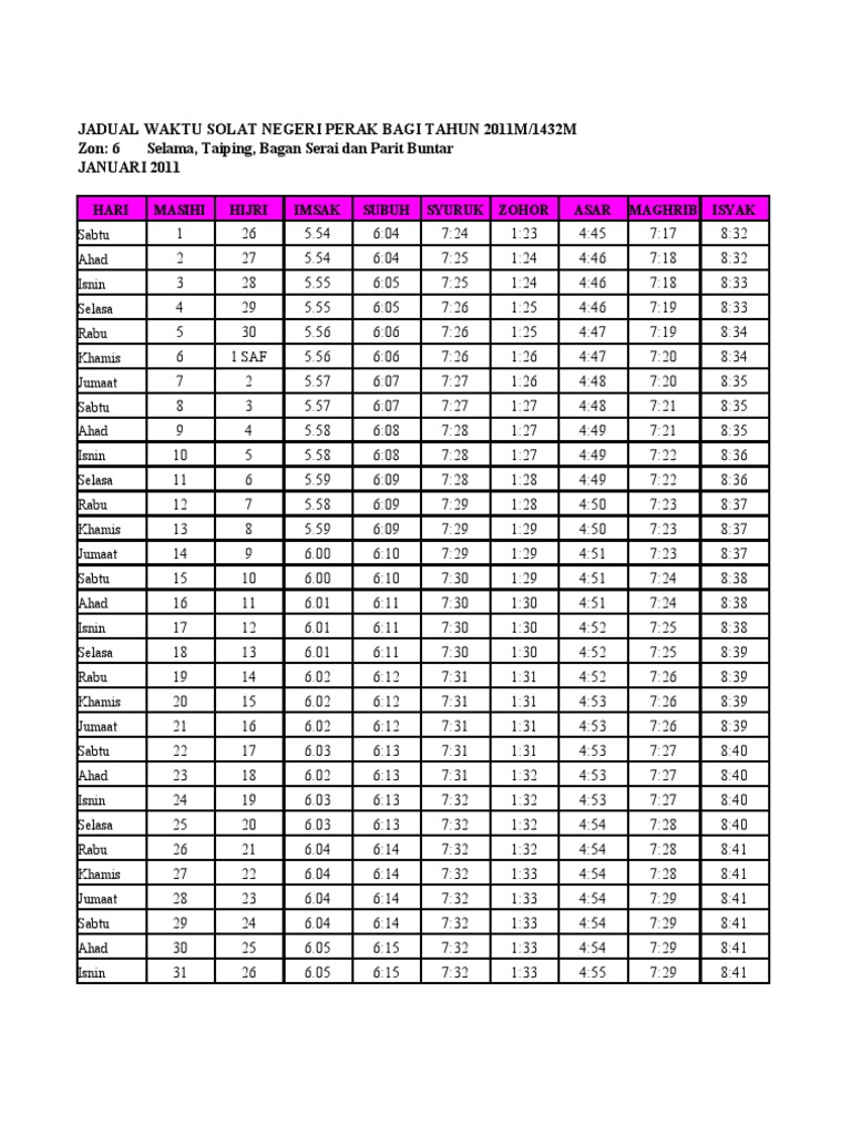 Waktu Solat Zon 6 Selama Taiping Bagan Serai Parit Buntar Pdf
